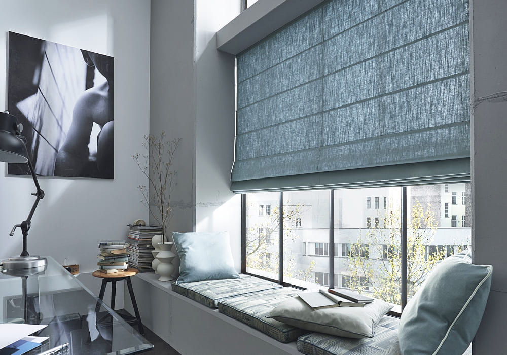 Римские шторы — стильный и функциональный декор, легко регулирующий освещение. Изготавливаются из разных тканей, однотонных или с узорами, подходящих для любого интерьера.
