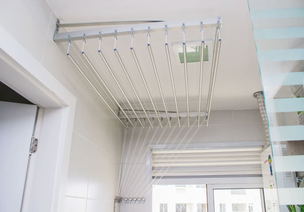 Сушилки потолочные от 1 метра до 2,5 метров (каждые 10 см). На 5 или 7 прутьев. Стальные или алюминиевые. Разные виды крепления.